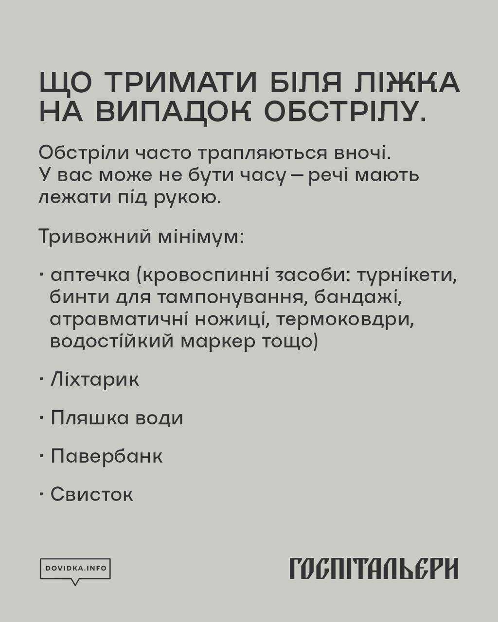 Обстріли часто трапляються вночі, коли у вас немає часу на збори. Усі речі мають лежати в зоні швидкого доступу: