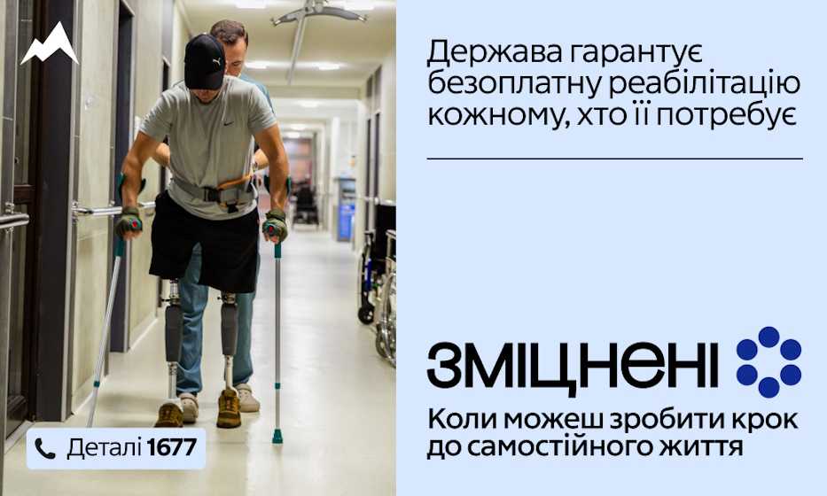 Інформаційна кампанія «Зміцнені» реалізується Національною службою здоров’я України у партнерстві з Міністерством охорони здоров’я України та Міністерством у справах ветеранів України за підтримки проєкту Rehab4U.